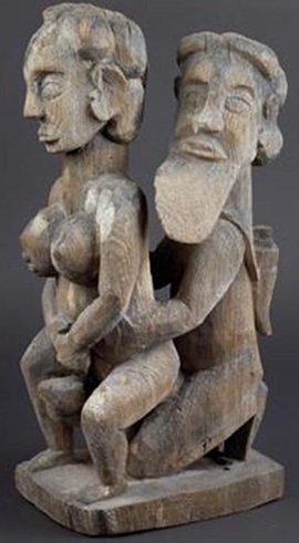 The Saklava Funeral Posts are wooden sculptures carved by the Saklava people of Madagascar. Displayed at the four corners of graves, they are often composed of a man and woman in sexual intercourse. Other poses show men with erect penises and women with open vaginas. While their meaning is uncertain, the Funeral Posts are probably an affirmation of life over death. In the twentieth century, after western tourists discovered them, the posts were also sold as souvenirs.